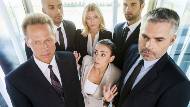 Yes, it's a strange one, isn't it? Well, let's listen to Jason Whale, sales manager at Elevators Ltd, talking about this subject. He thinks he may have found a solution to the problem. He uses a word that describes the state of feeling strange or uneasy. Can you tell me what it is?